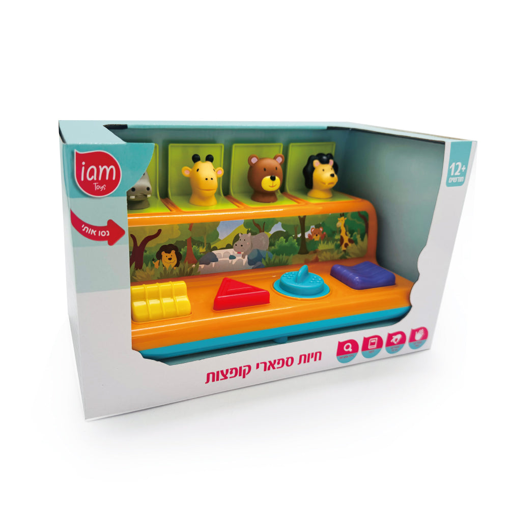 אתגר מוטורי לאצבעות כף ידם של הפעוטות, לכשיצליחו... יתוגמלו בקפיצה מפתיעה של בעל חיים מתוך התיבה.
